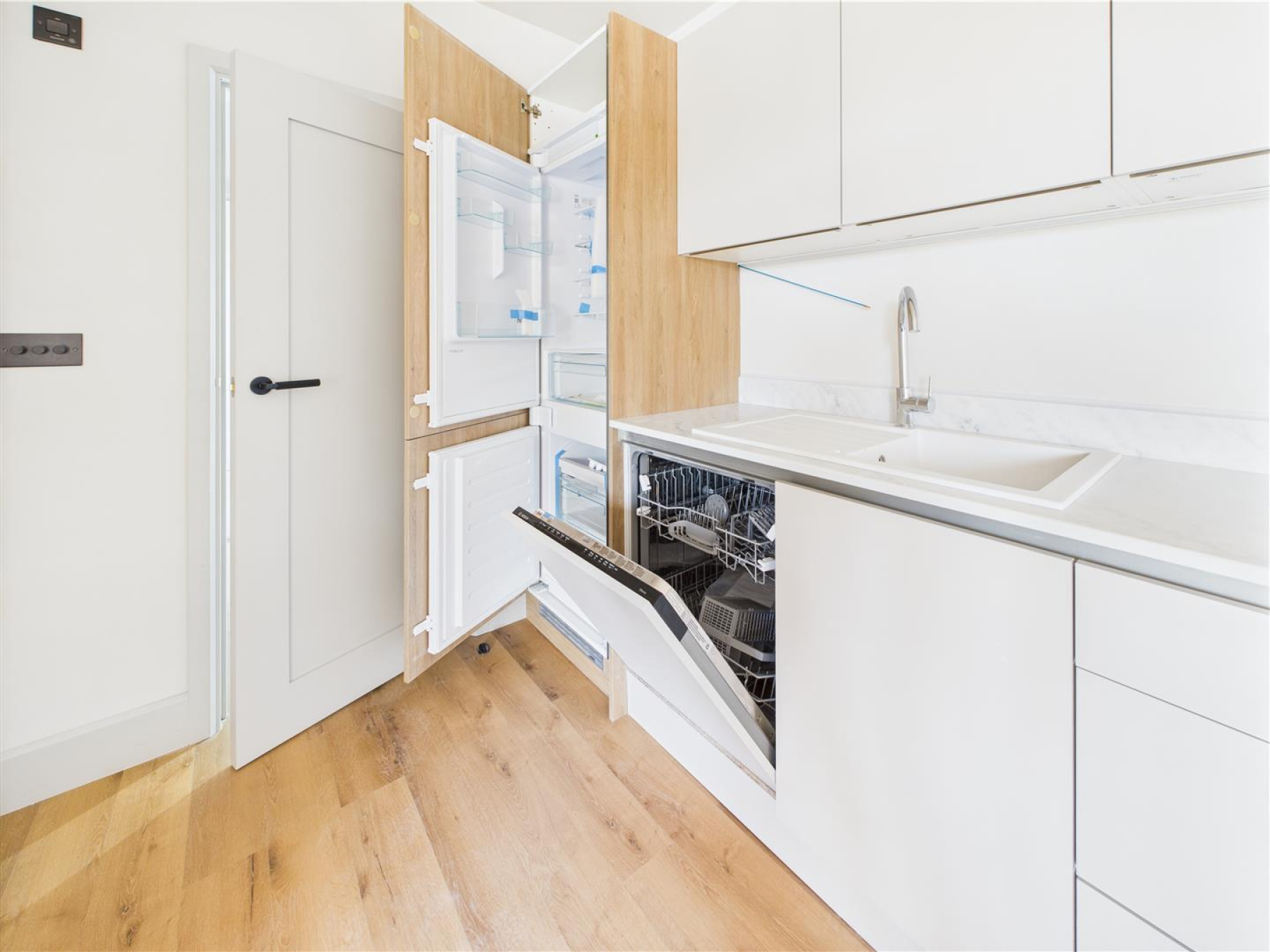 Open Plan Kitchen/Living Room - 6.02m x 4.29m (19'9 x 14'1) - This open plan kitchen is complete with an integrated fridge/freezer, dishwasher and electric 'Bosch' oven and an induction hob with stone work surfaces. Doors to balcony.