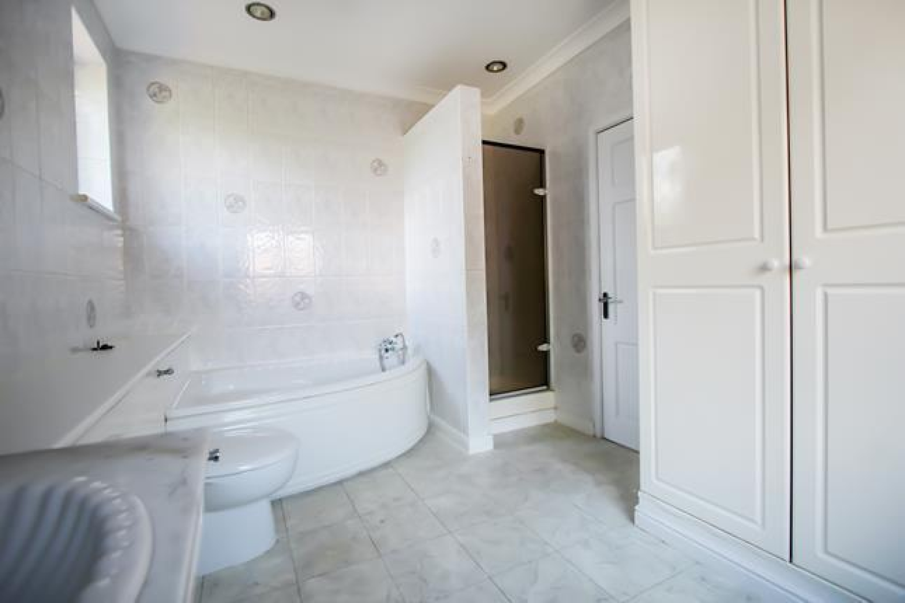 Bathroom - Window to rear, corner bath with shower attachment. Low level WC, wash hand basin.