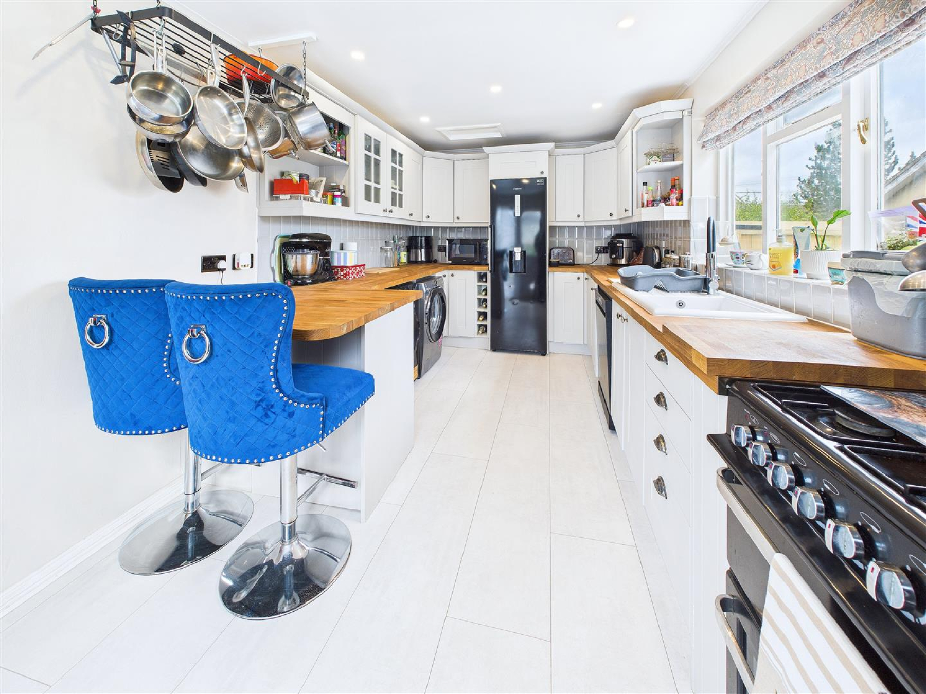 Kitchen - Large double glazed windows to rear. Units to eye and base level, incorporating Sink and drainer with mixer taps over. Breakfast bar. Gas hob. Fridge Freezer. Space ad plumbing for washing machine, tumble dryer and fridge freezer. Tiled flooring. Door to rear garden.