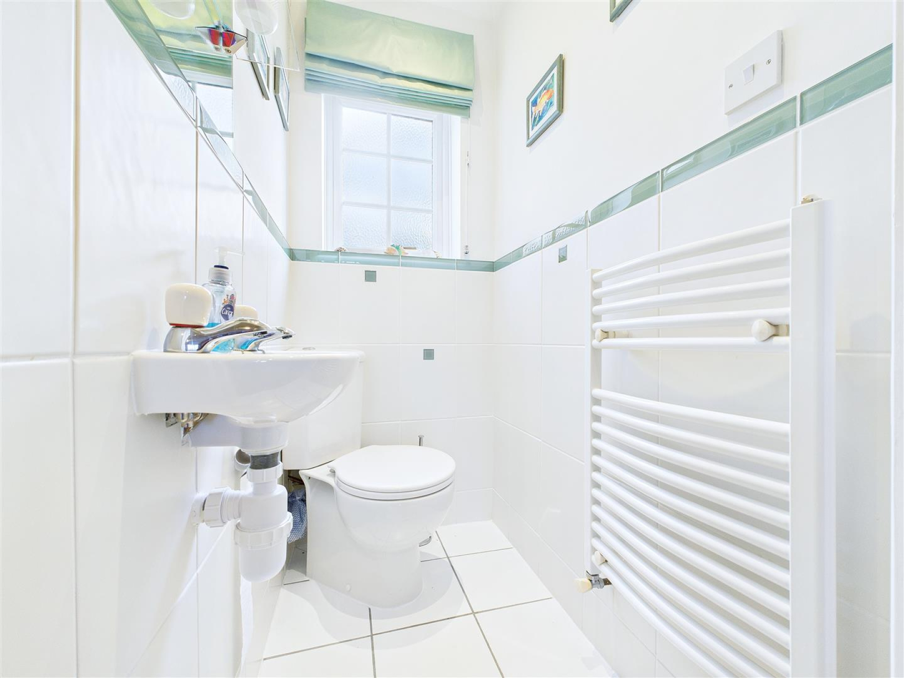Wc - 1.35m x 0.89m (4'5 x 2'11) - Window to rear, close coupled WC, wash hand basin, heated towel rail, part tiled walls.