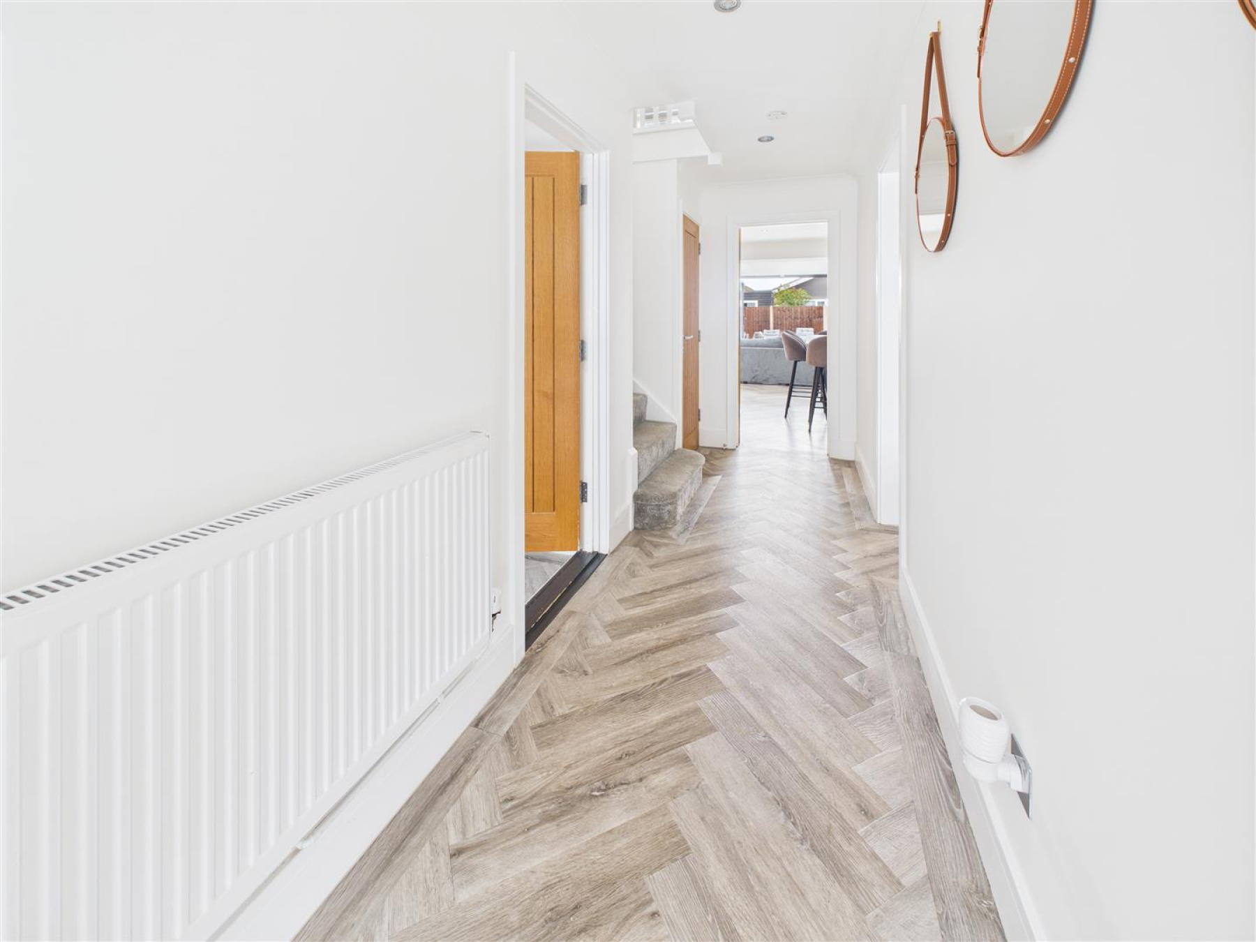 Entrance Hall - Entrance door, Herringbone flooring, radiator. Stairs to first floor.