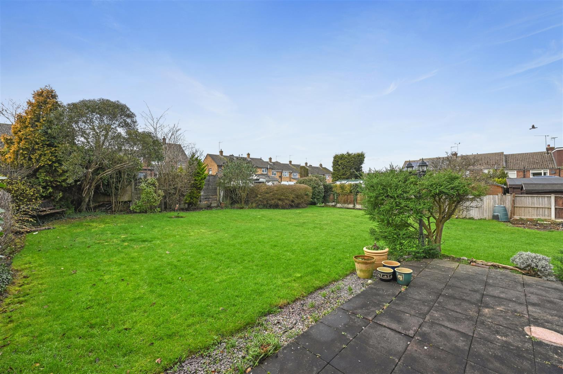 Large Rear Garden - Paved patio area, side access, remainder laid to lawn with fencing to boundaries and various, trees, flowers and shrubs.