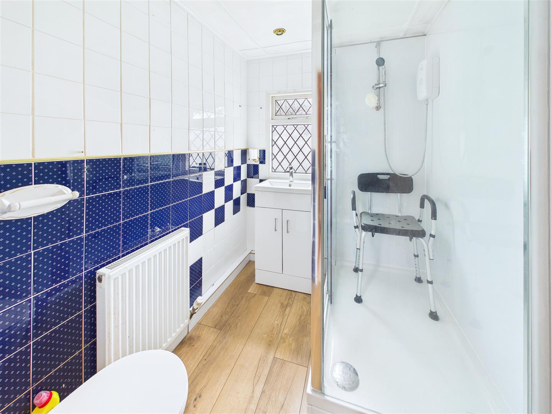 Bathroom - 2.13m x 1.65m (7' x 5'5 ) - Window to side, shower cubicle, low level WC, wash hand basin, radiator, tiled walls.