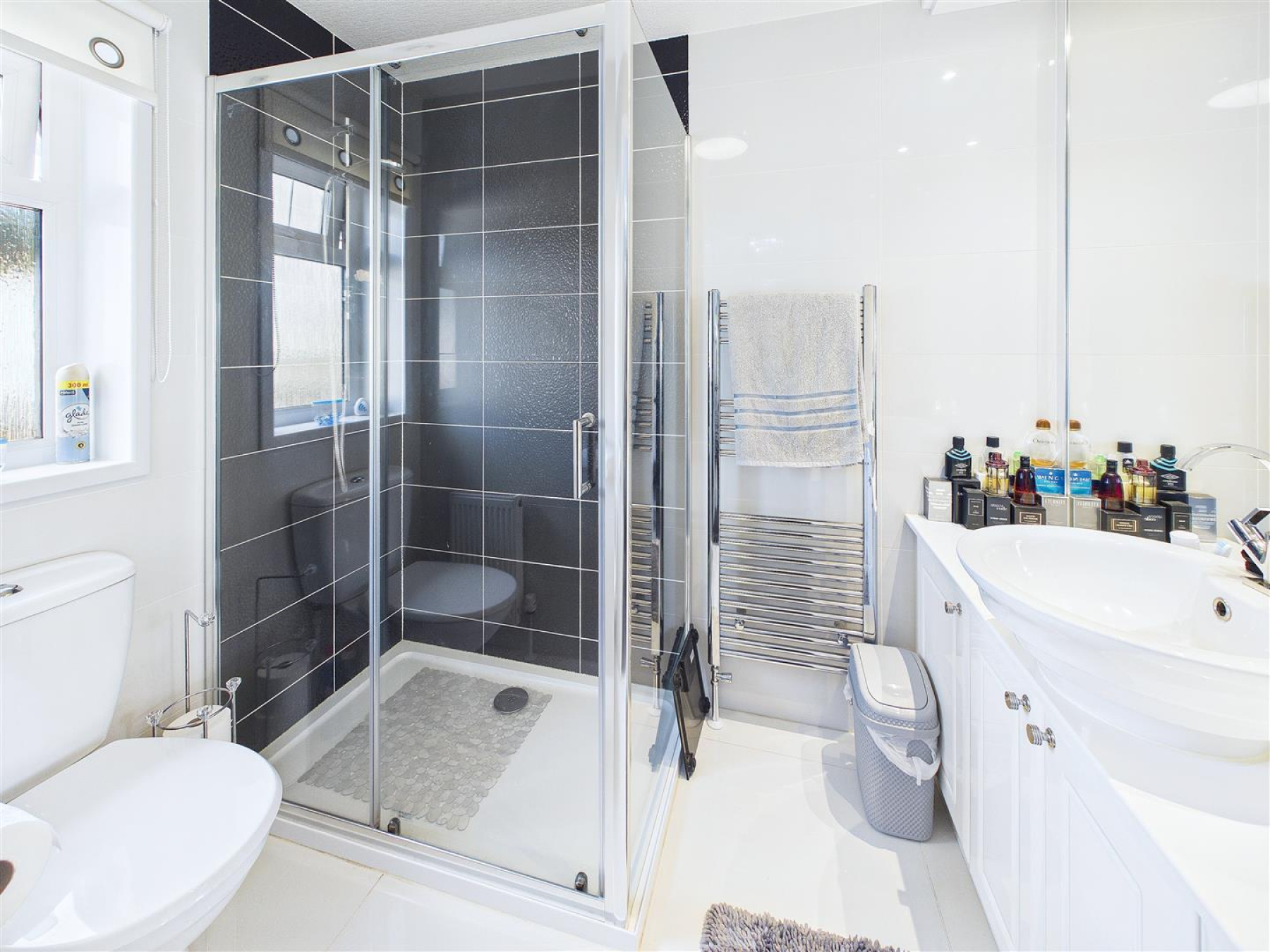 Ensuite - 2.21m x 1.52m (7'3 x 5') - Window to side. Shower cubicle, low level WC, wash hand basin, part tiled walls, heated towel rail.