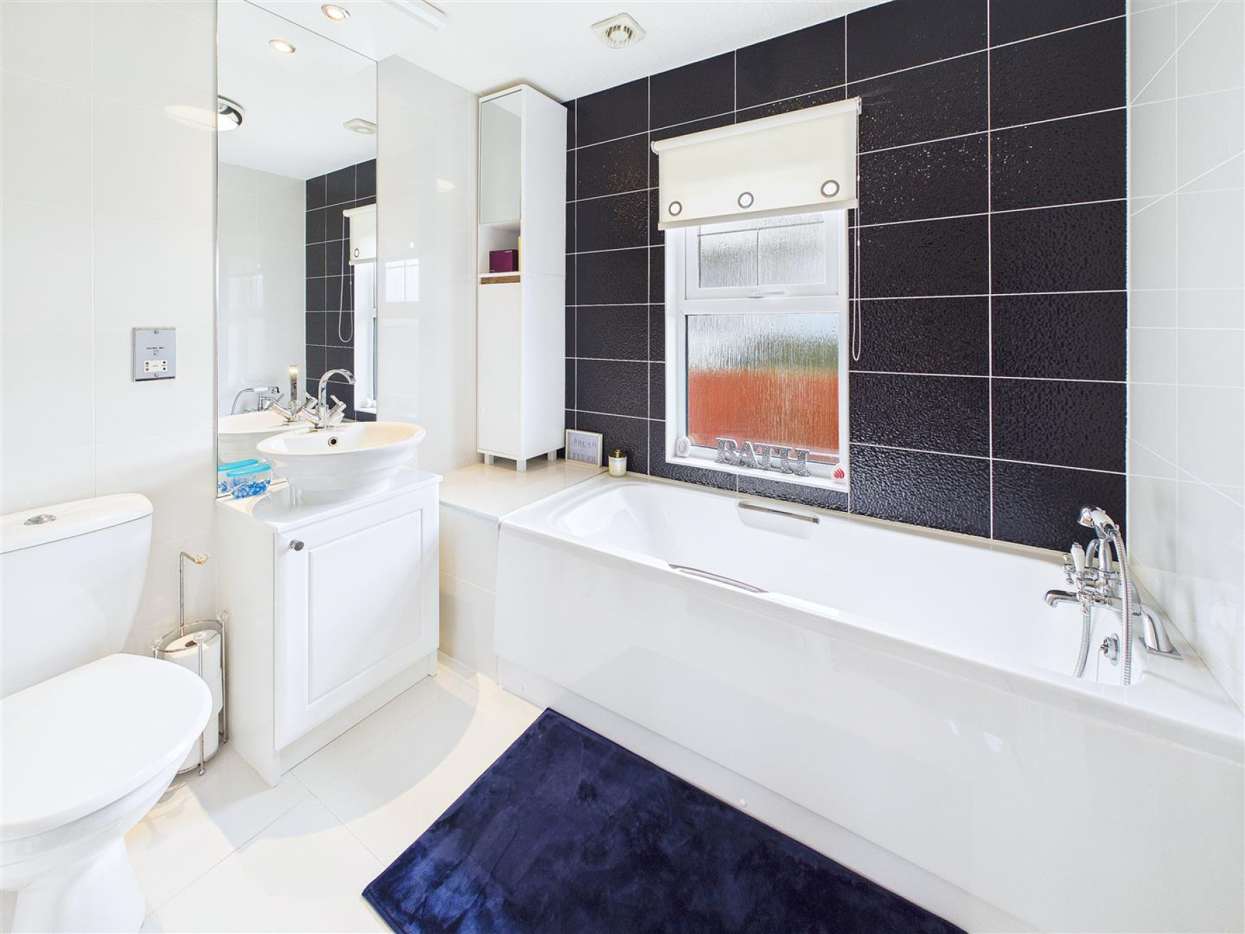 Bathroom - 2.26m x 1.98m (7'5 x 6'6) - Window to side, panelled bath with shower attachment. Low level WC, vanity wash hand basin. Part tiled walls, heated towel rail.