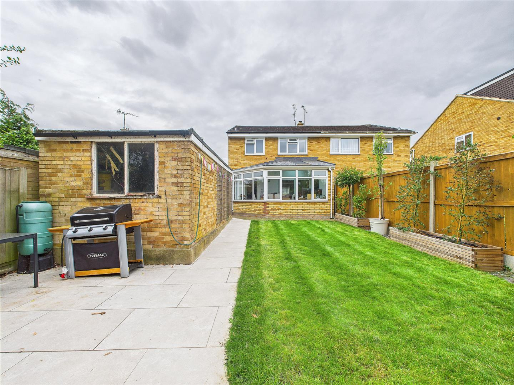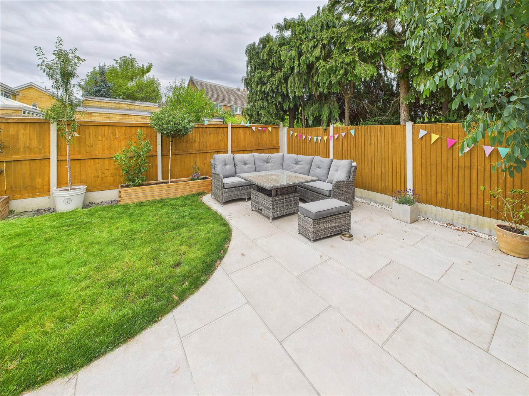 Rear Garden - Lawned area with paved patio seating area, fencing to boundaries.