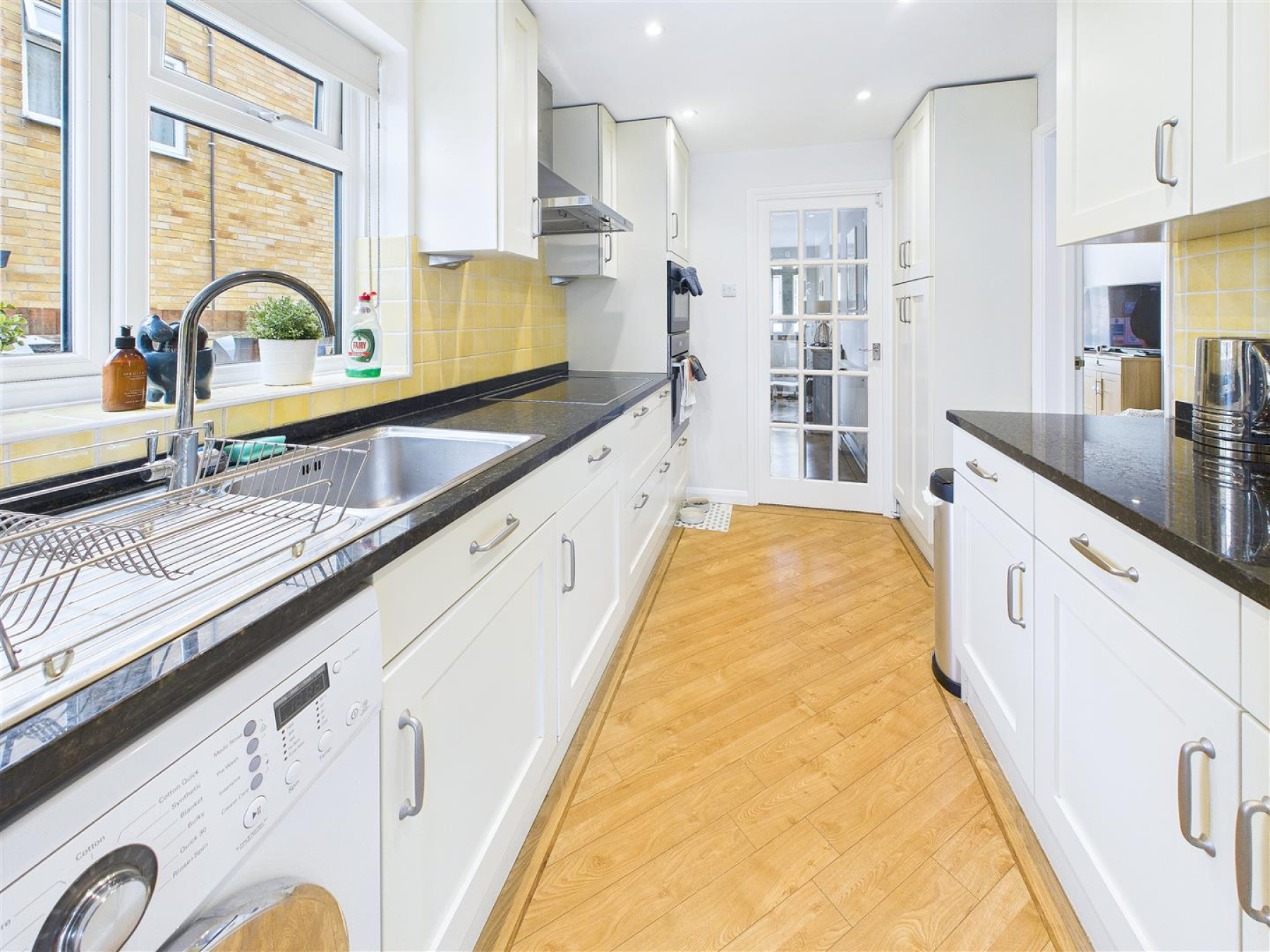Kitchen - 3.68m x 2.26m (12'1 x 7'5) - Window to side, range of fitted storage units with integrated electric oven, space and plumbing for fridge/freezer and washing machine. Granite work surfaces incorporate sink unit with mixer taps and electric hob with extractor over. Door to conservatory.