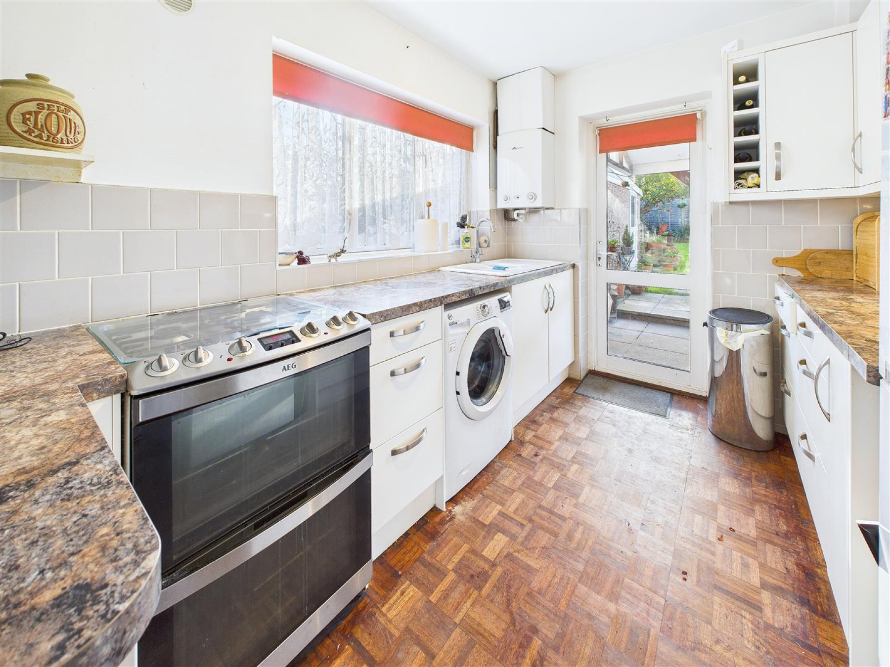 Kitchen - 3.30m x 2.34m (10'10 x 7'8) - Window to side, door to rear. Range of fitted storage units with space and plumbing for washing machine, fridge/freezer and oven. Wall mounted boiler. Work surfaces incorporate the sink unit. Part tiled walls.