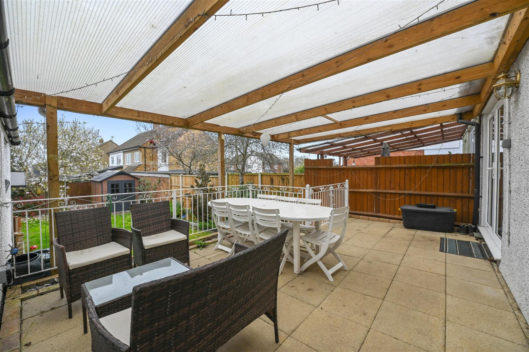 Rear Garden - Raised patio area with shelter, lighting and fencing. Remainder laid to lawn with various flowers, shrubs and trees to boundaries.