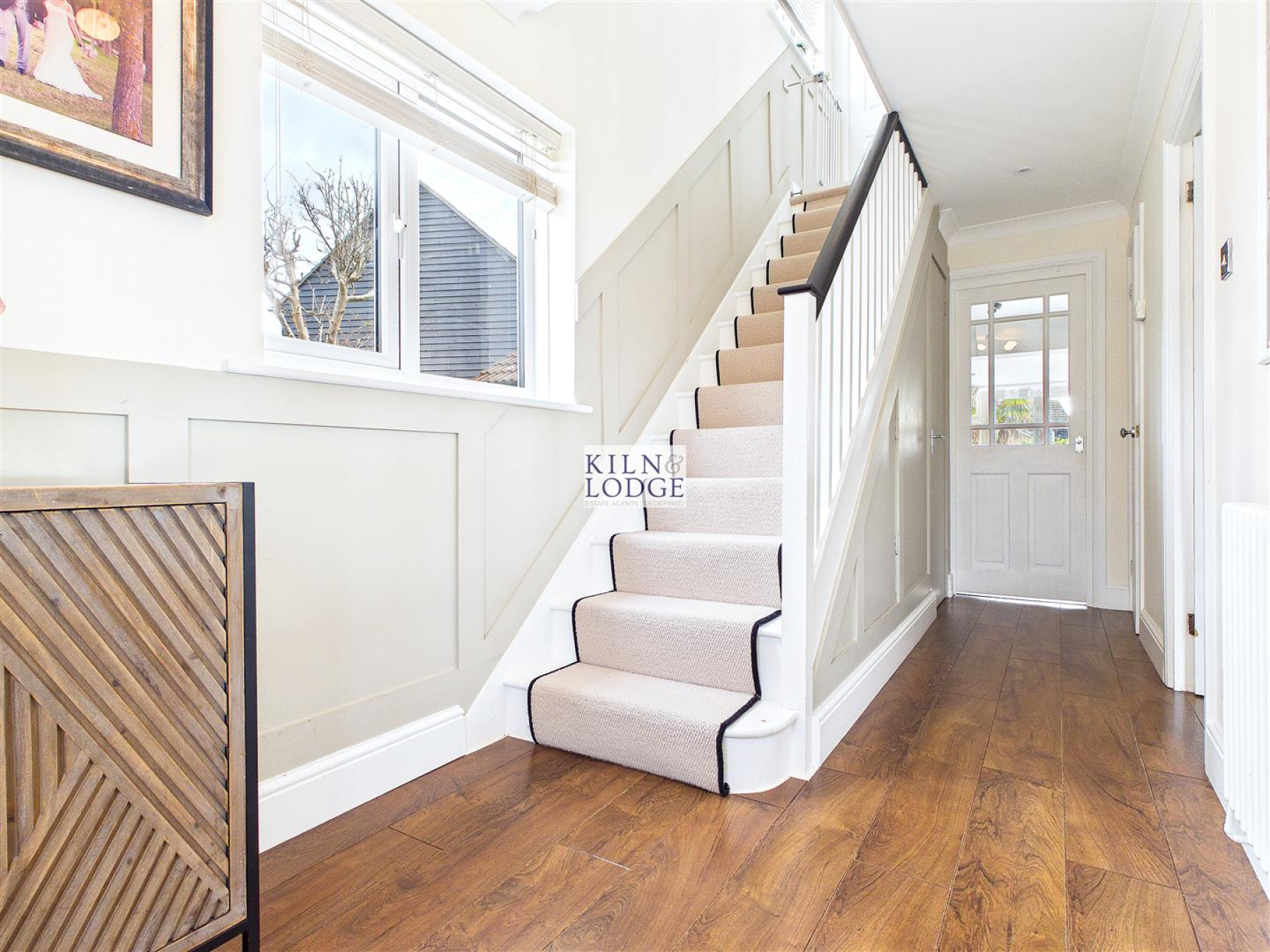 Entrance Hall - 4.88m'1.83m x 1.83m'0.30m (16'6 x 6'1) - Entrance door, window to side, stairs to first floor, concealed understairs storage cupboard, wood panelling.