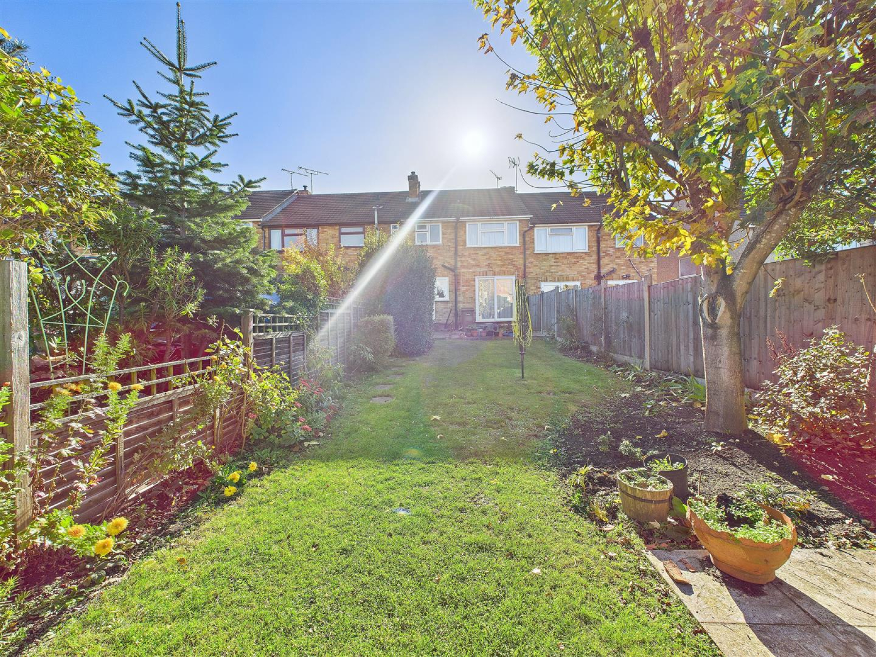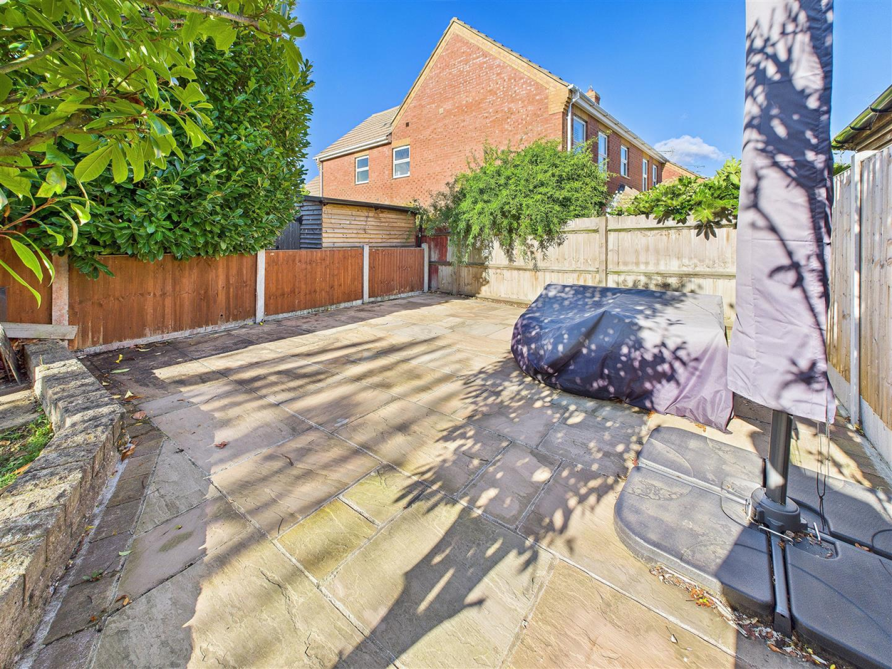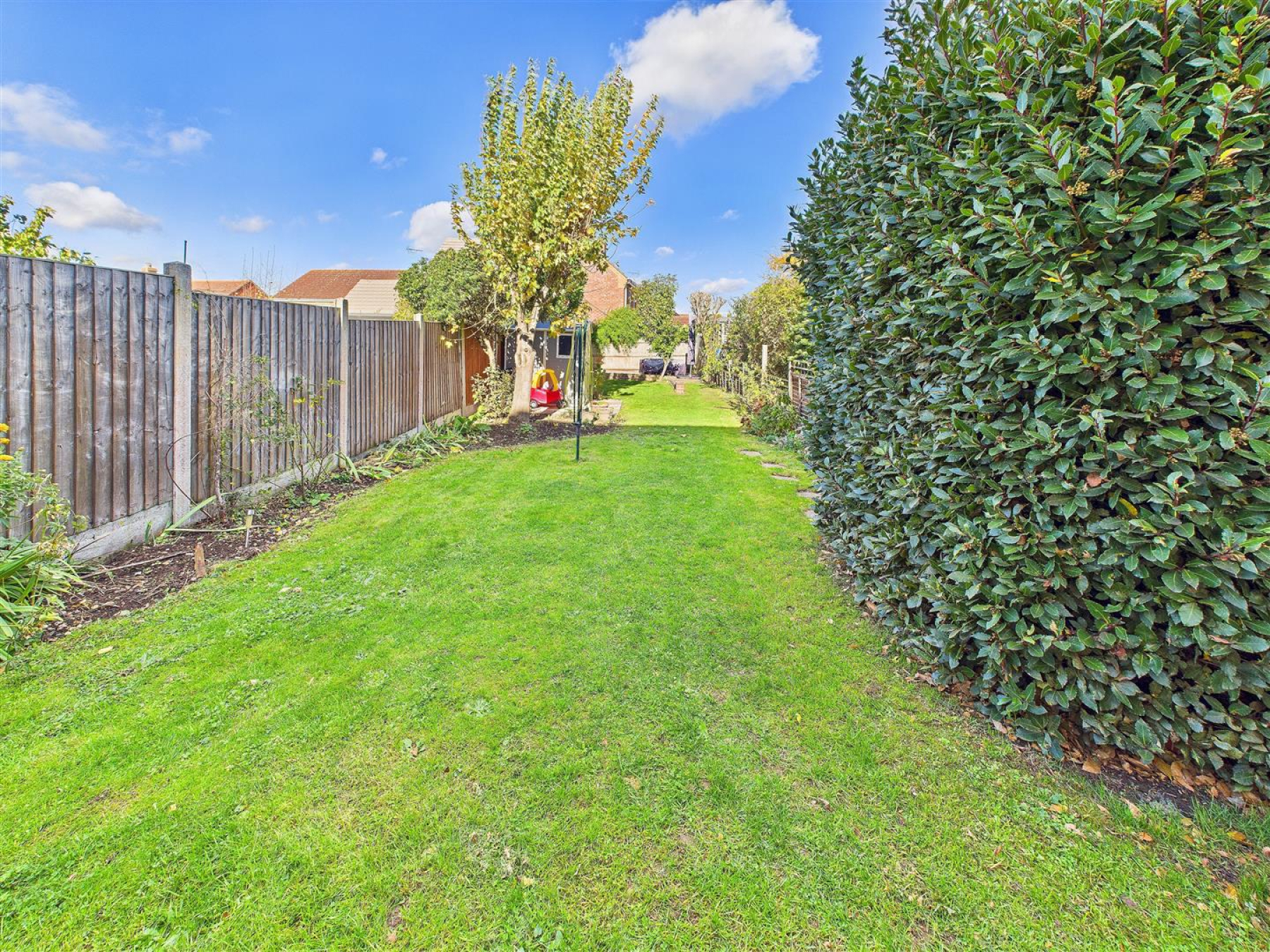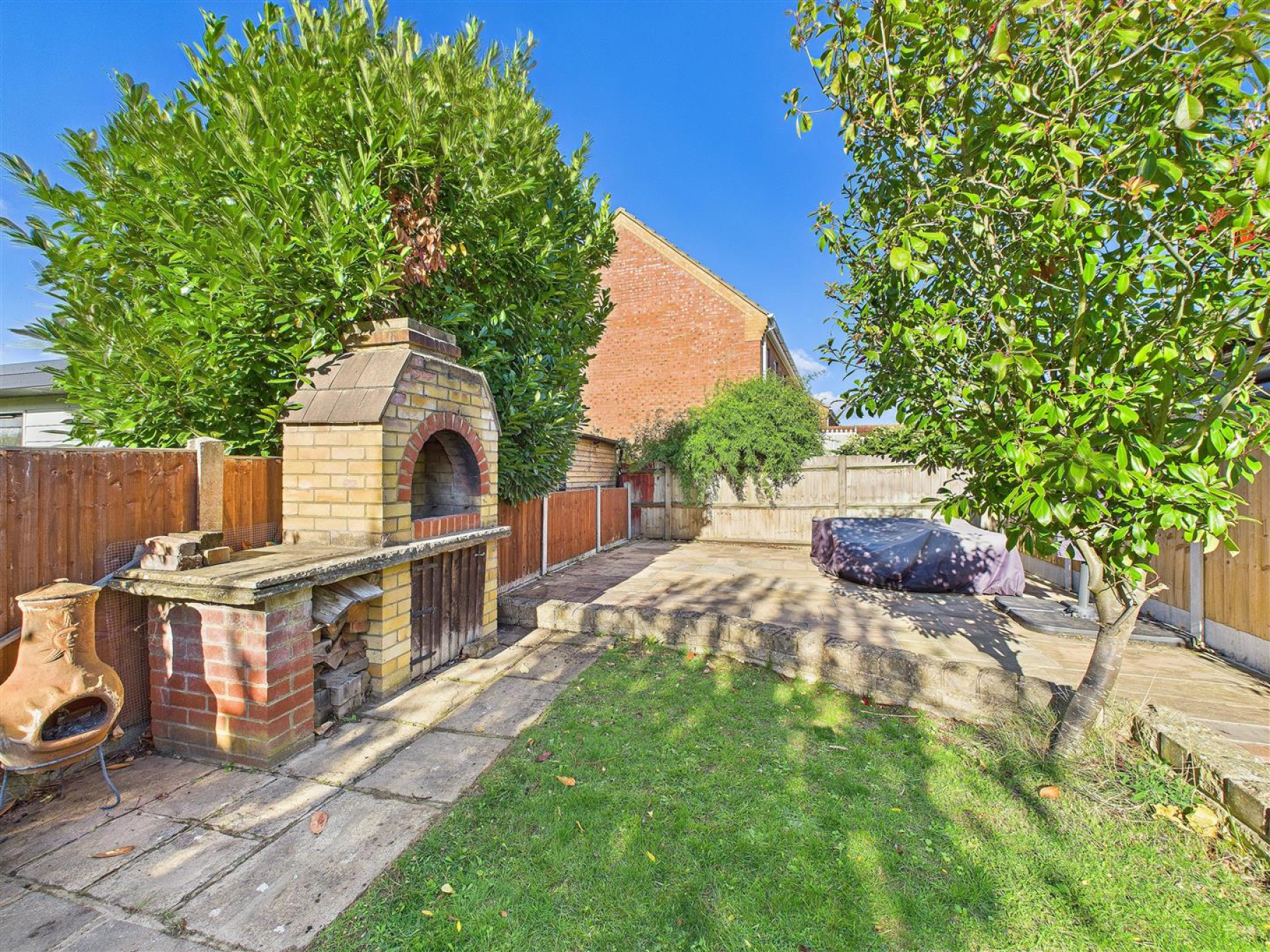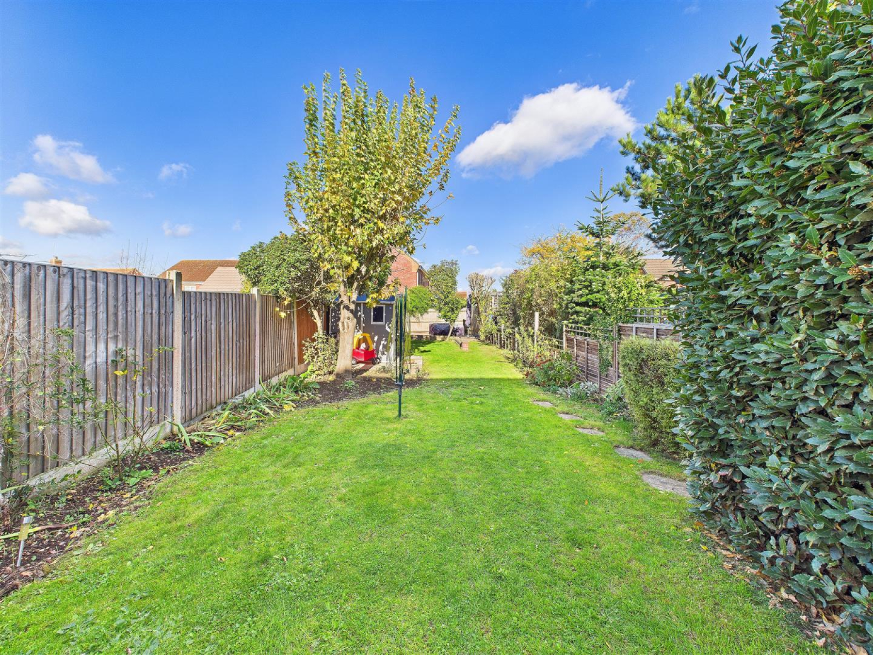 Large Rear Garden - Large rear garden laid to lawn with fences to all boundaries. Paved path leading to rear paved area with stove and log store.