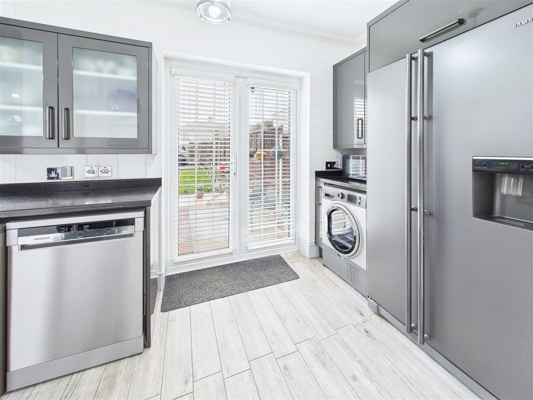 Kitchen - 5.54m x 1.85m (18'2 x 6'1) - Patio doors to rear, window to rear. Range of fitted units with an integrated electric oven. Space an plumbing for washing machine, tumble dryer and American style Fridge/Freezer (to remain). Work surfaces incorporate gas hib with extractor over and sink unit.