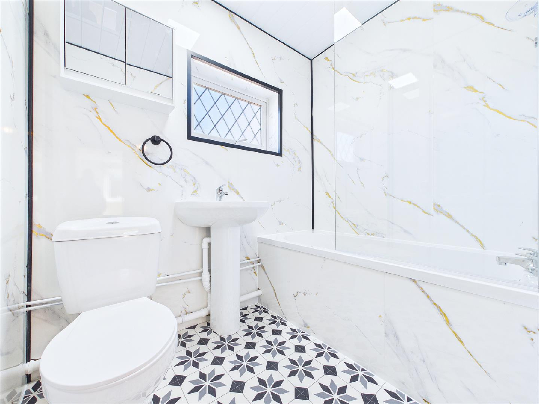 Bathroom - 2.01m x 1.50m (6'7 x 4'11) - Window to front, panelled bath with shower over, pedestal wash hand basin, low level WC. Radiator.